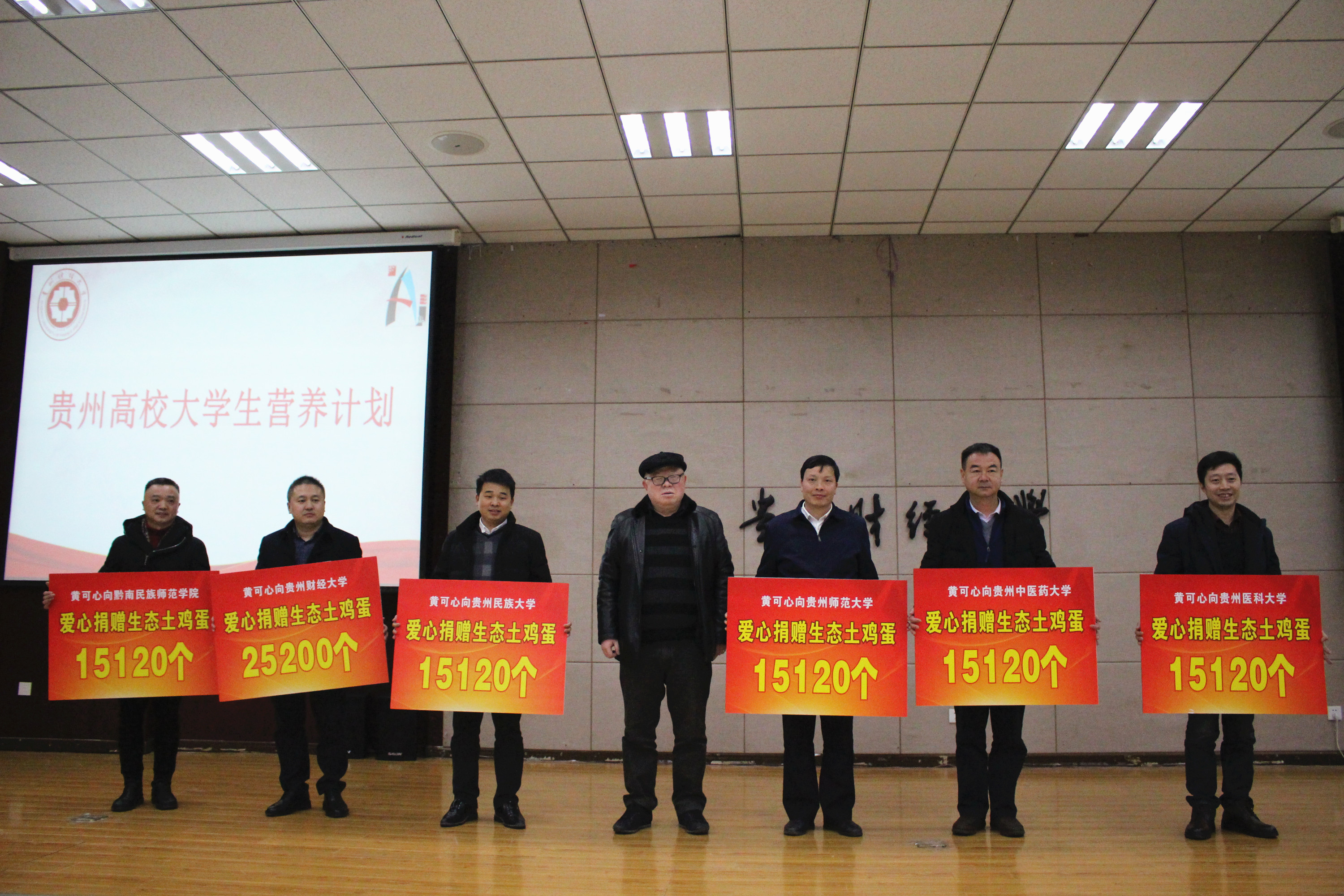 贵财校友发起贵州高校大学生营养计划,受捐赠高校代表上台接受捐赠。