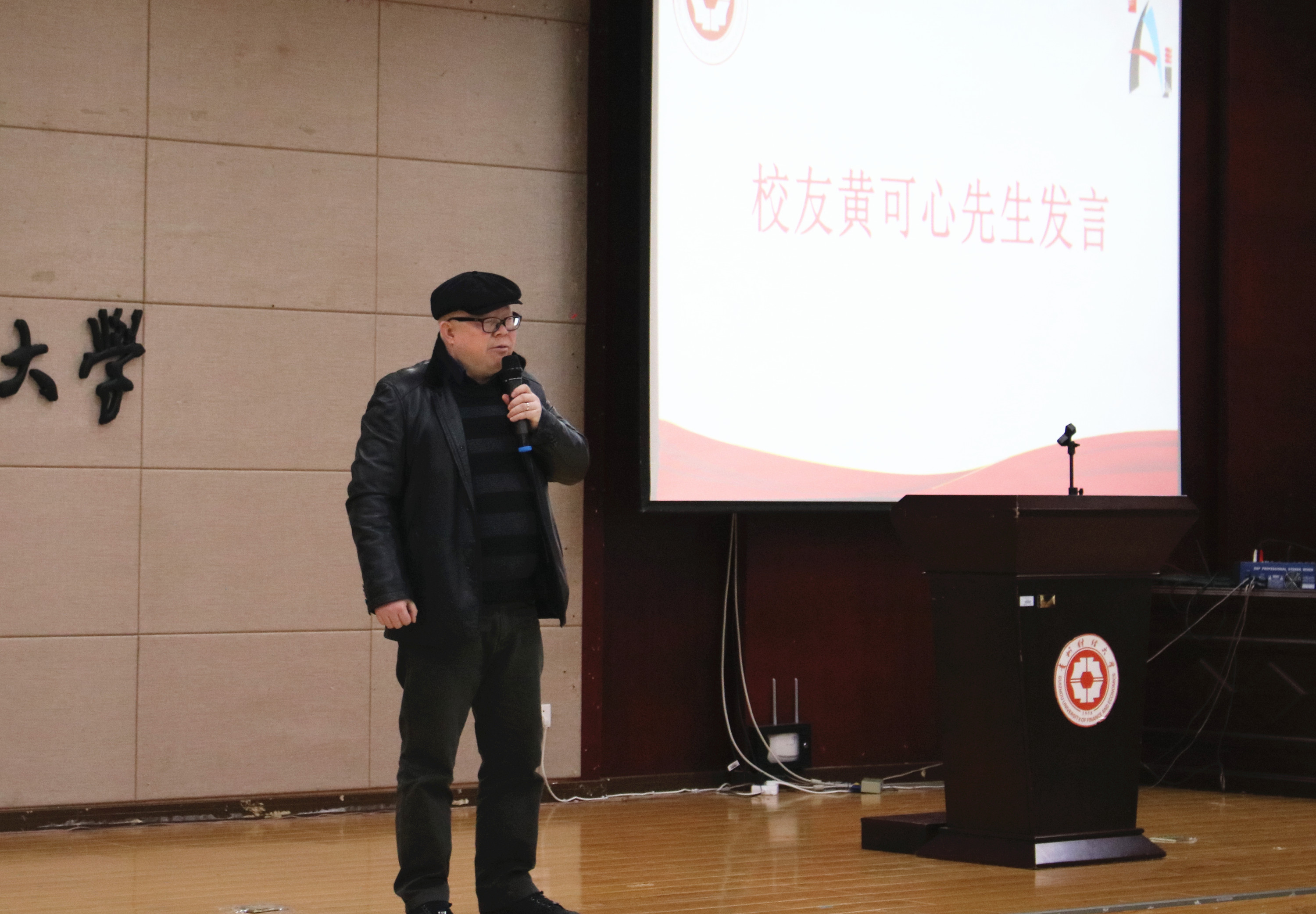徐大佑致辞,他首先对各位领导和嘉宾的到来表示热烈欢迎,对黄可心先生以及各位校友长期对母校教育事业的关心和支持致以衷心的感谢。他指出,贵财建校发展至今,培养了一批批优秀的毕业生,这是学校丰硕的育人成果,更是贵财六十二载生生不息的原动力。如今,在学校发展新的历史起点上,希望全体贵财人勠力同心,关注学校发展、助推学校发展,让优秀的贵财精神、贵财传统薪火相传。