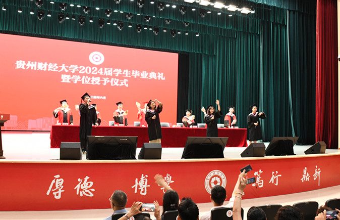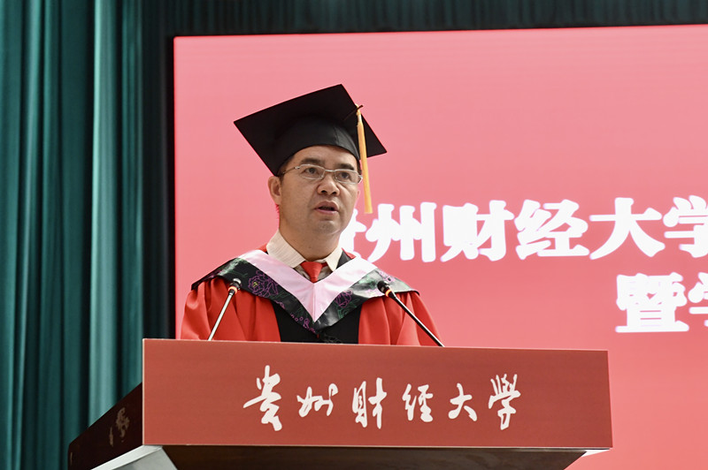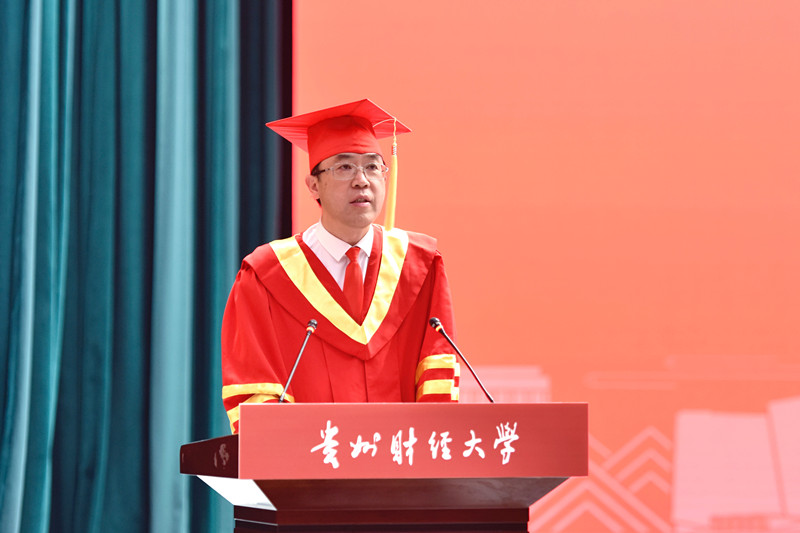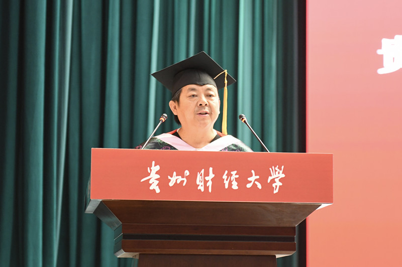 校党委书记战勇教授以“以梦为马,奔赴星辰大海,奋力书写为中国式现代化挺膺担当的青春篇章”为题,为2024届圆满完成学业的四千余名本、硕、博及留学生毕业生作启航新征程寄语讲话。他指出,光阴易逝,韶华有时,每一届毕业生都有值得铭记的独特记忆。过去的几年里,同学们与祖国同行、与贵州同进、与学校同在,学校生态校园建设和校园文化建设日臻完善,学校与大家共同进步,无论是学术立校日益深入人心,还是实现“贵财,我们从此在一起”,学校的每一步发展,都是全体师生员工齐心协力、拼搏奋斗的结果,凝聚着大家的辛勤汗水,而正是因为有同学们的参与和见证,才显得更有活力、更有意义。