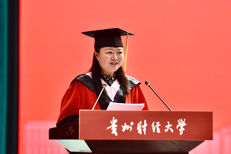 典礼仪式上,省纪委监委派驻贵州财经大学纪检监察组组长龙化宣读毕业生毕业文件。副校长徐大佑宣读校友联络大使聘任文件、宣读硕士和博士学位授予文件。校党委副书记彭洁宣读学士和留学生学位授予文件。