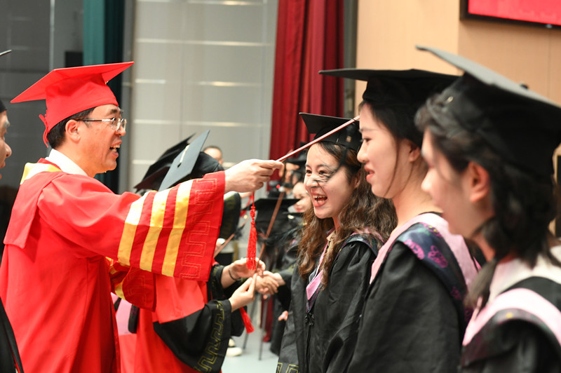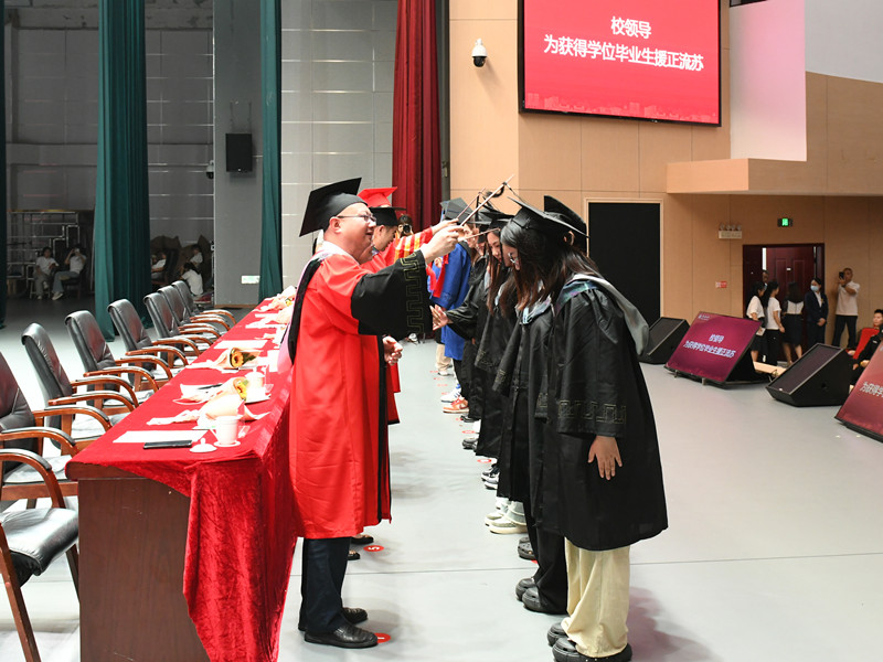授位仪式上,全体校领导为在场2024届毕业生一一拨穗正冠、援正流苏,与毕业生合影留念。